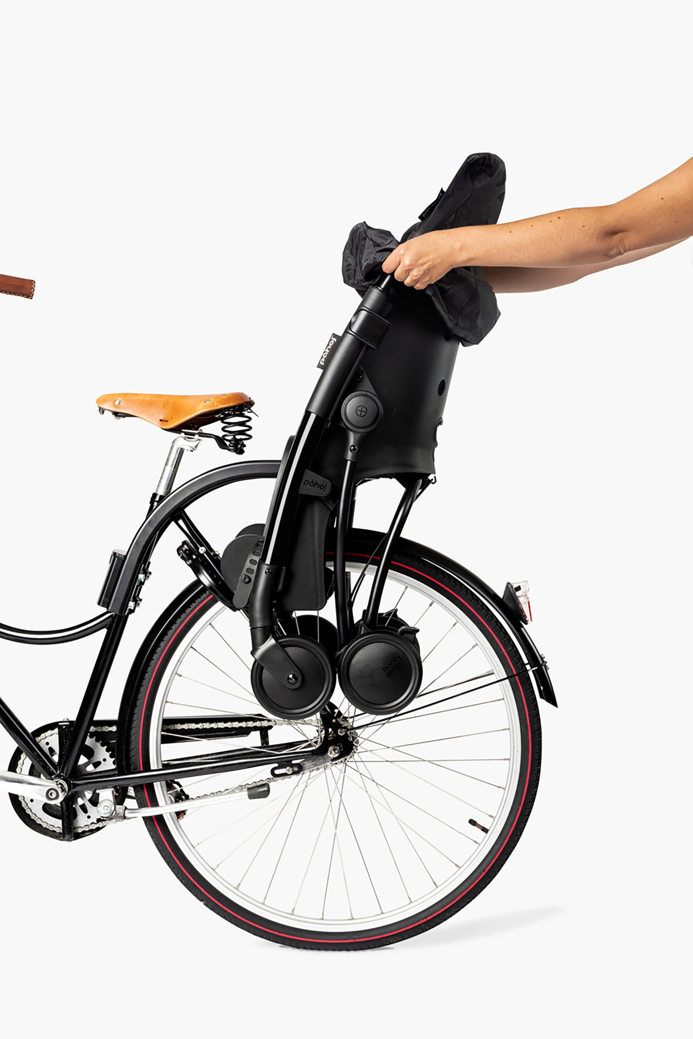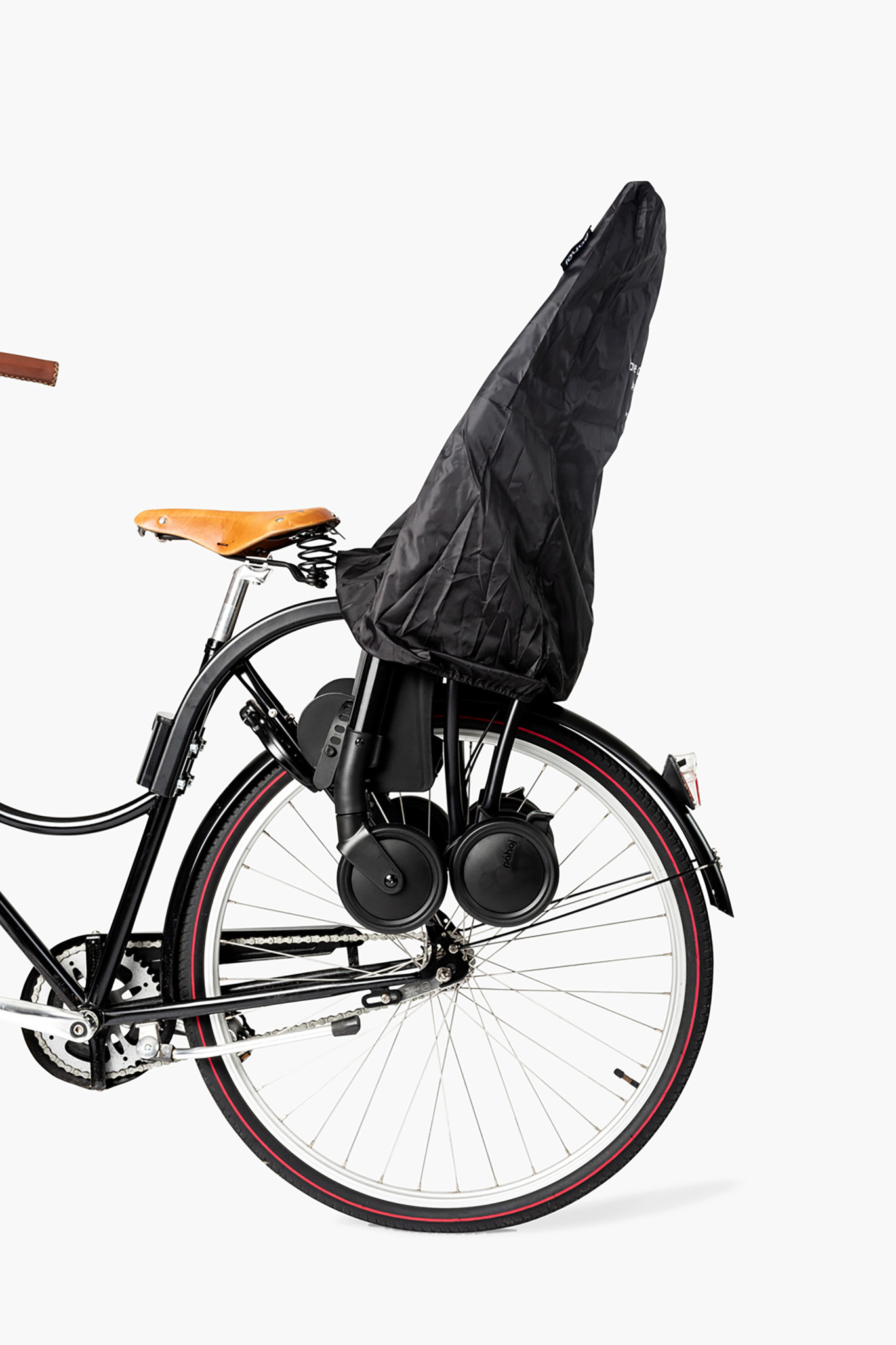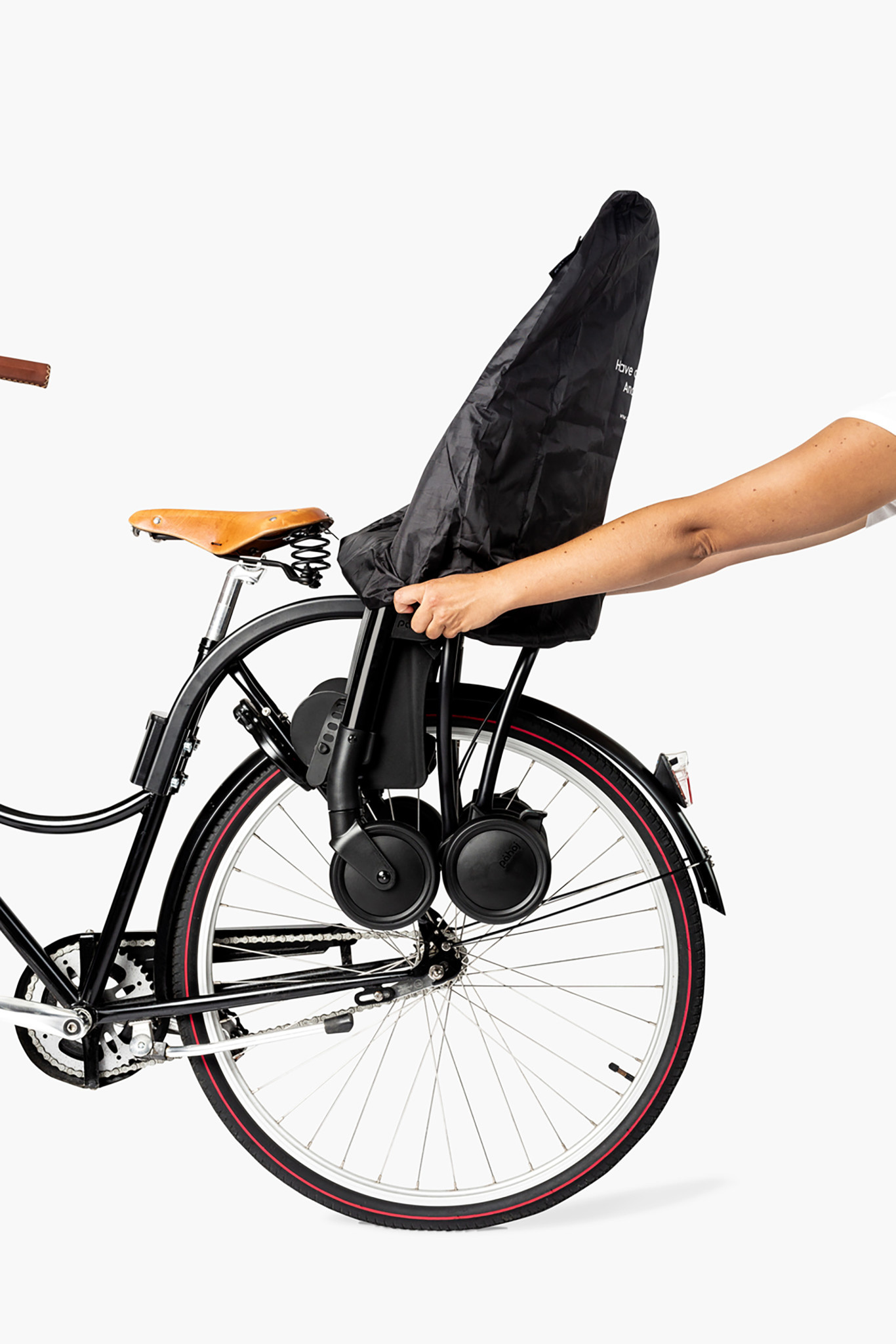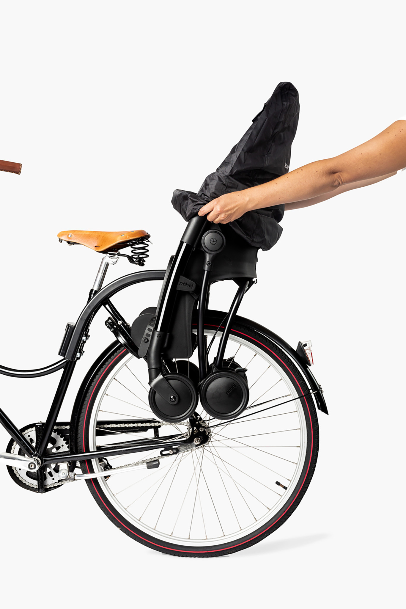 Zweedse merk Påhoj heeft een fietsstoeltje ontworpen dat je in een vingerknip kan omtoveren tot een buggy.